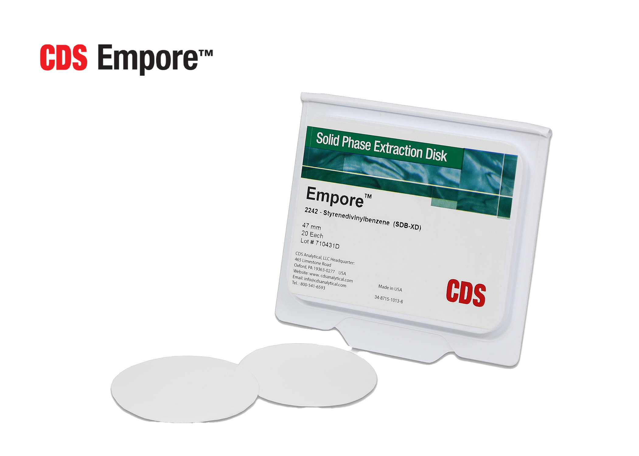 CDS Empore 2240 Environmental SDB-XD Disks are made of polystyrenedivinylbenzene (SDB-XD) with a 12 μm particle size for solid phase extraction (SPE) of non-ionic surfactants. These disks offer broad chemical compatibility and are suitable for environmental sample preparation across a wide pH range from 1 to 14. Ideal for samples requiring retention of non-polar and non-ionic analytes.