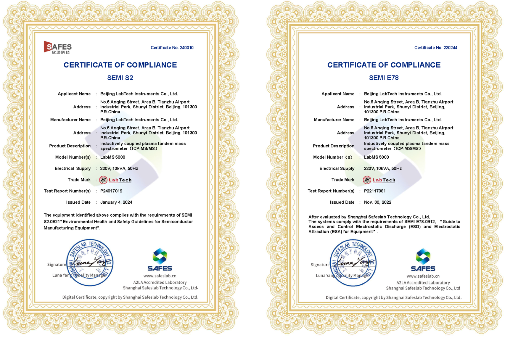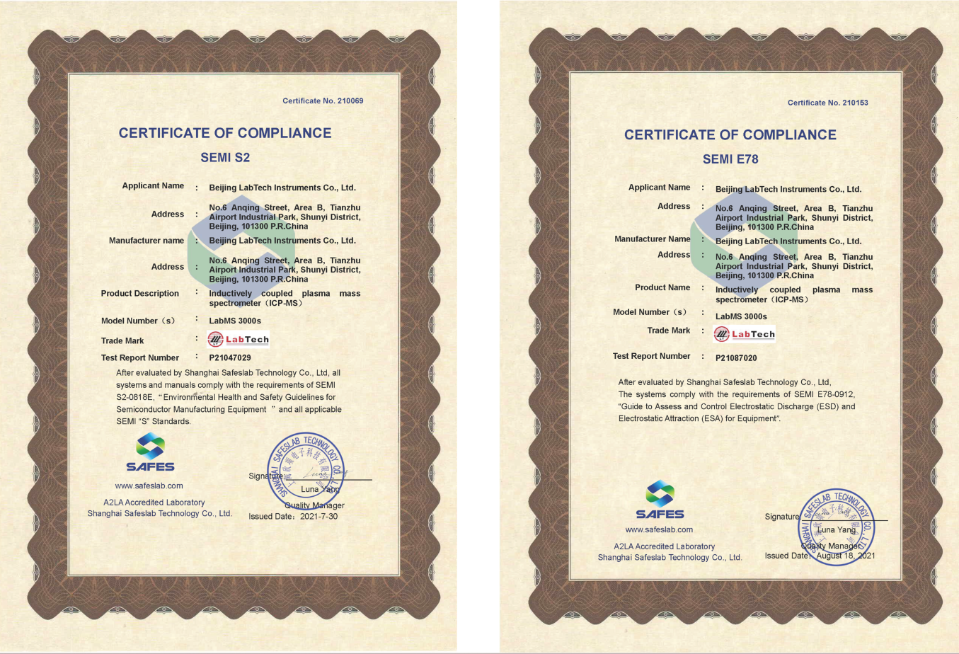 Notably, the LabMS 3000s, with its outstanding performance, successfully obtained SEMI S2 and SEMI E78 certifications in July 2021, making it the first domestically manufactured ICP-MS in China to achieve these recognitions. (Note: SEMI standards are international industry norms established by the Semiconductor Equipment and Materials International association (SEMI) for semiconductor manufacturing equipment, flat panel display equipment, and materials suppliers, and are widely recognized as global benchmarks in the semiconductor industry.)
