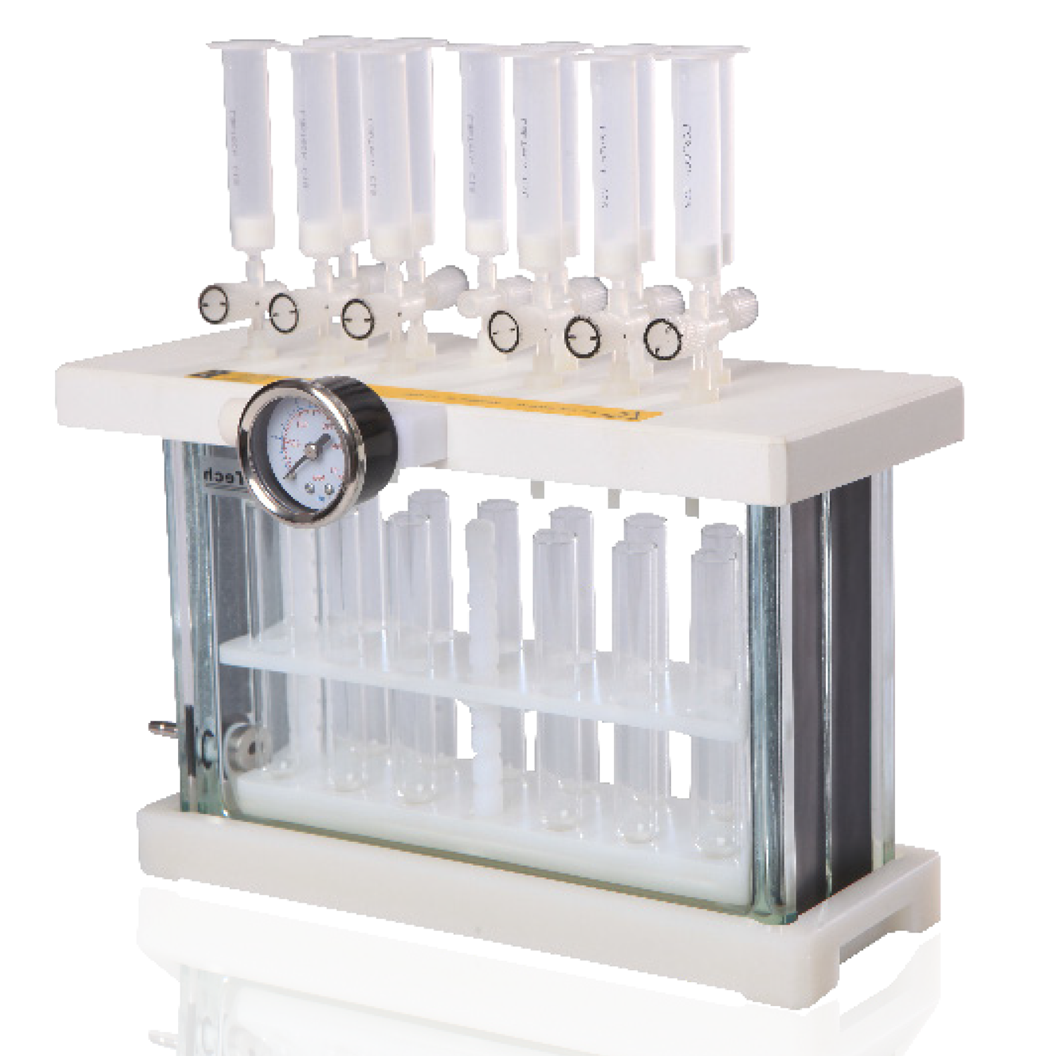 W-SPE Manual Vacuum Manifold is designed for the extraction and enrichment of organic compounds. It is compatible with standard-sized SPE cartridges, features independent valves, is durable, and is easy to operate. Available in 12-position and 24-position options.