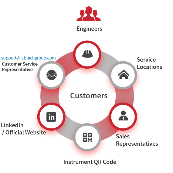 In addition to delivering reliable laboratory instruments and equipment worldwide, LabTech Group is committed to providing high-quality technical support to our global customers. To better serve LabTech users around the world, we have established numerous international branches and service centers. Each location is staffed with highly experienced and professionally trained technicians.